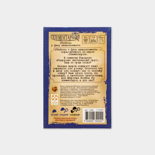 SALEСкидка−16%Настольная игра «Элементарно!: Убийство в День независимости»Текущая цена380 ₽Старая цена450 ₽