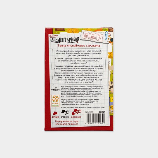 SALEСкидка−16%Настольная игра «Элементарно для детей: Тайна пропавшего суриката»Текущая цена380 ₽Старая цена450 ₽